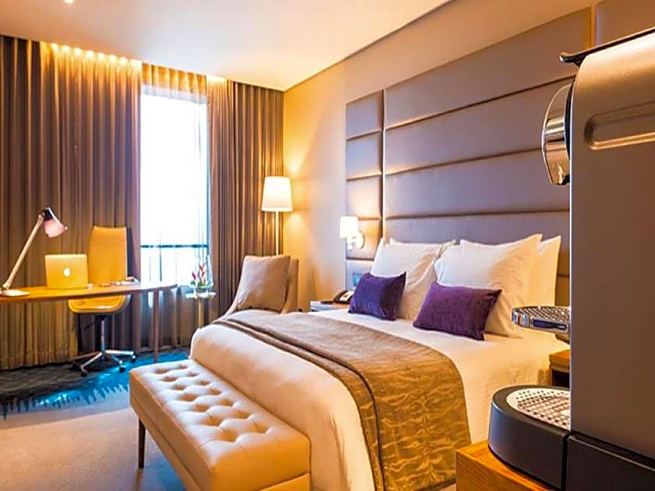 The room offers air conditioning, a safe deposit box and a mini bar. There is a Nespresso® coffee machine and guests receive a complimentary newspaper.